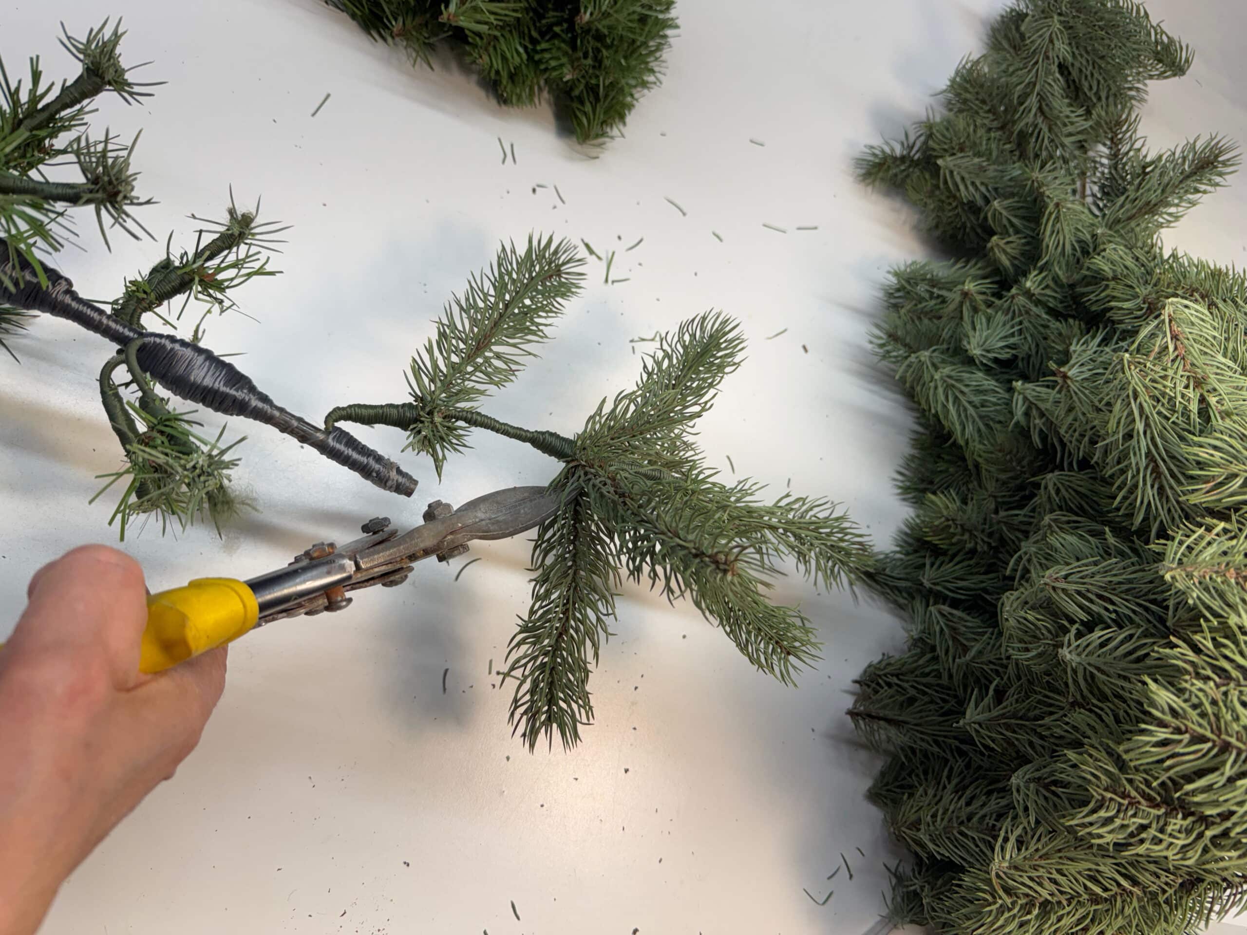 Since used trees are quite inexpensive and easy to find I like to cut them for my needs. I do not want to massive trees anymore. Look for the most real version (molded is often best) and preferably ones with wire stems. (this big tree ended up being enough to make about 7 Slim trees and 3 Plunger Trees)