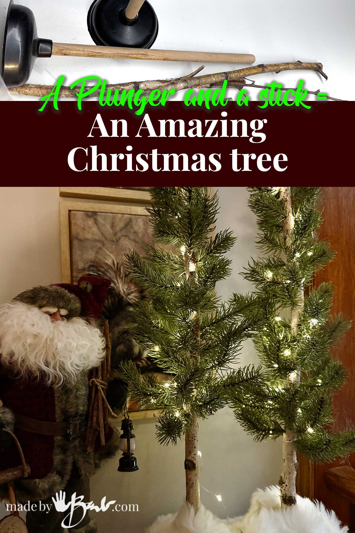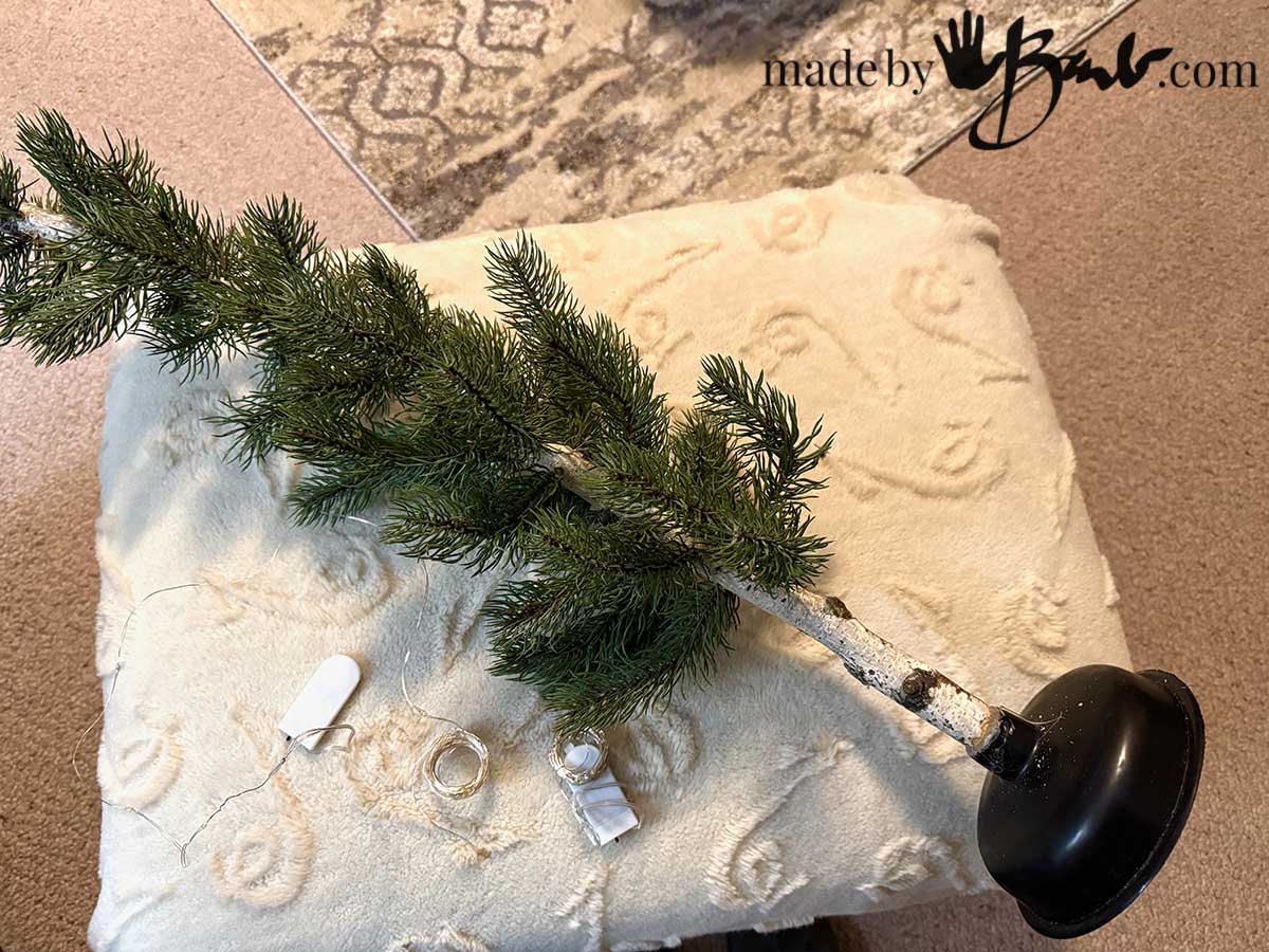 A plunger + a stick = the most amazing little Christmas tree youโll ever make.