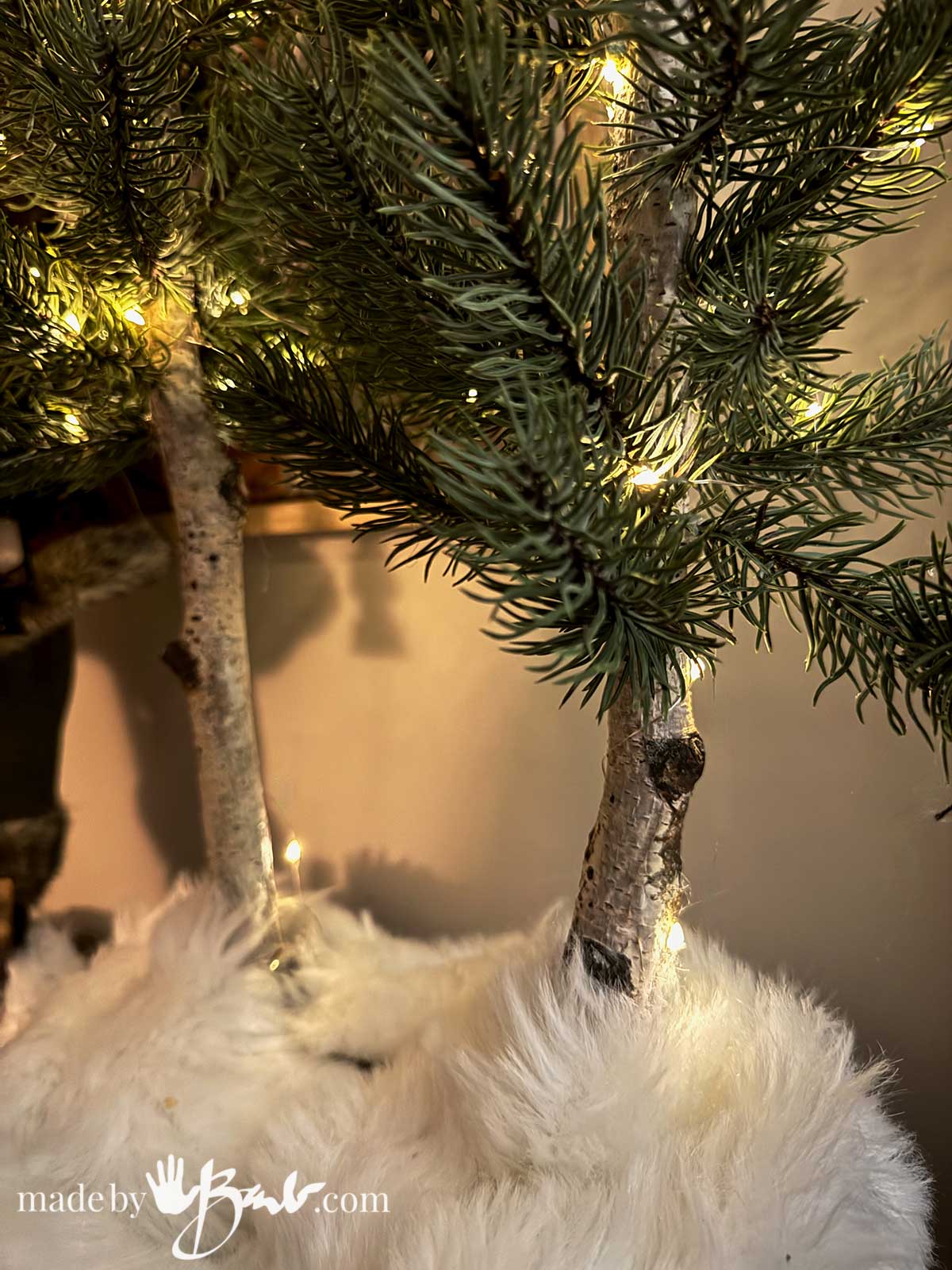 These trees look beautiful either way. I think they look so real that I tend to skip a lot of the decorations. I strive to have the look of a forest indoors.